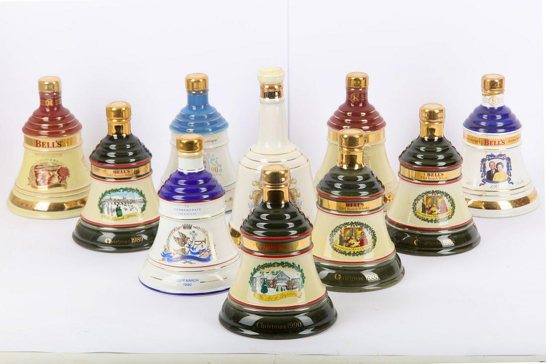 Skip to main content. A 1970s ceramic decanter of bell s blended scotch whisky which seems to have a sprinkling of glitter in the varnish which makes it rather pretty as well as collectible. Bell s first began to release whisky in ceramic decanters during the 1920s commemorating special occasions and by 1930 a bell shaped decanter was in use. Bell s two sons joined the business in partnership in 1895.